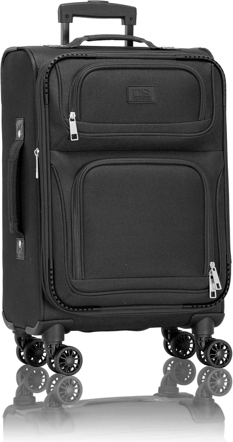 U.S. Traveler Rio Lightweight Softside Rolling Carry-on Suitcase, 4-Wheel Set, Green(Black)